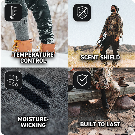 Alpaca delivers everything you need for a successful hunt: adapts to temperature, natural scent control, moisture-wicking, durability, and circulation support. Instead of thinking about your feet, you can focus on the shot of a lifetime.