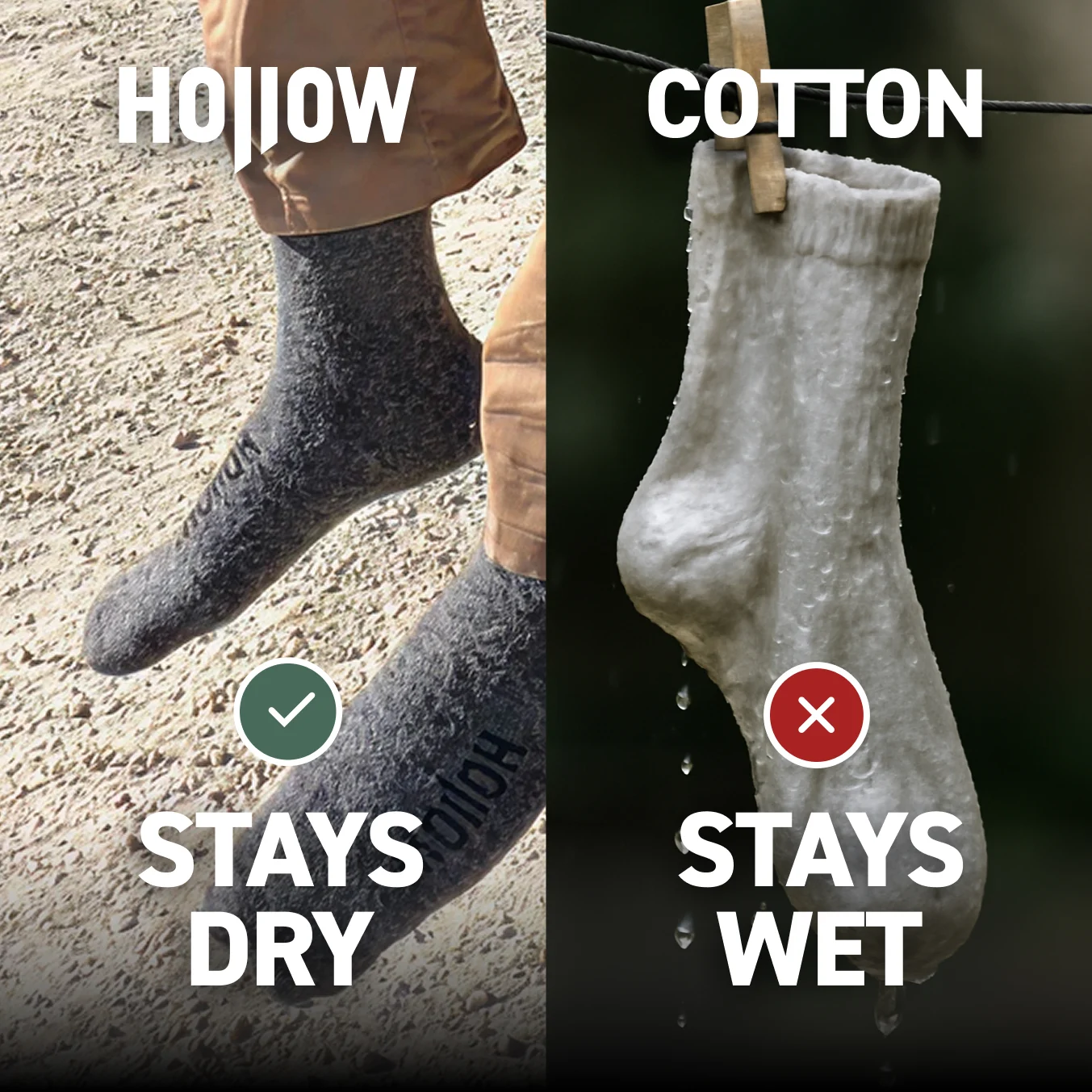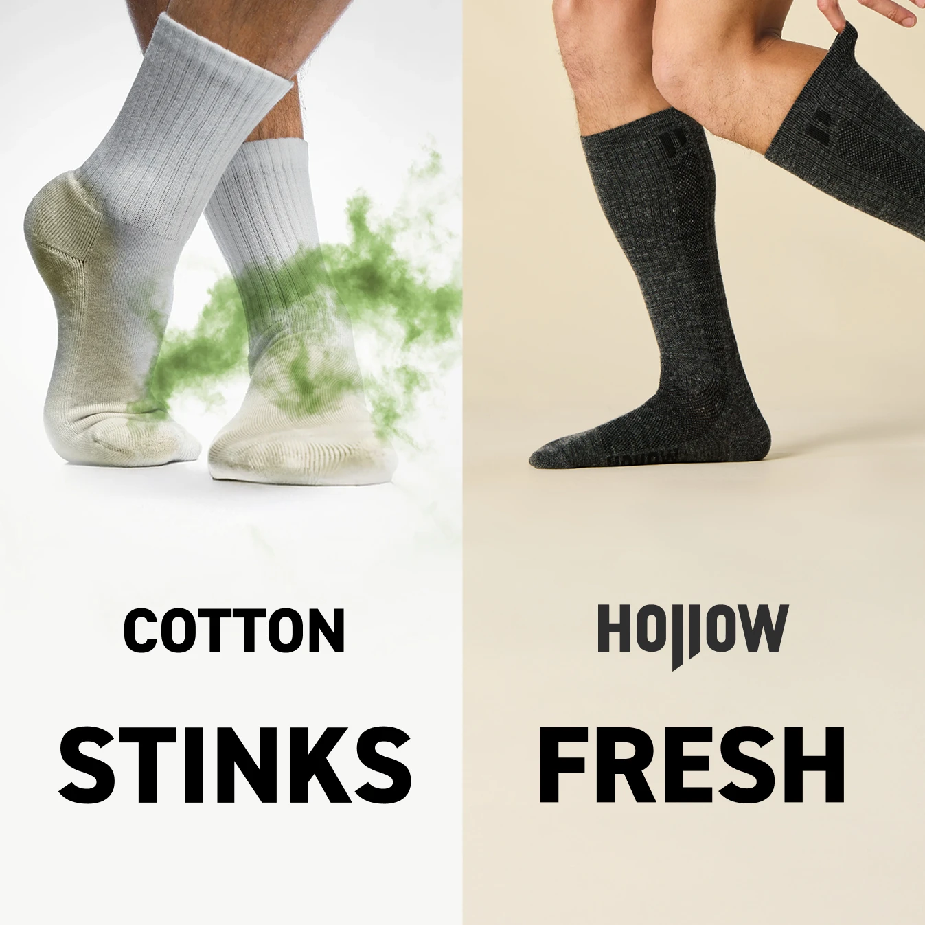 Stop buying 6-packs that fall apart after a month. One pair of Hollows outlasts 10 pairs of drugstore socks. Better materials, better construction, better value.
