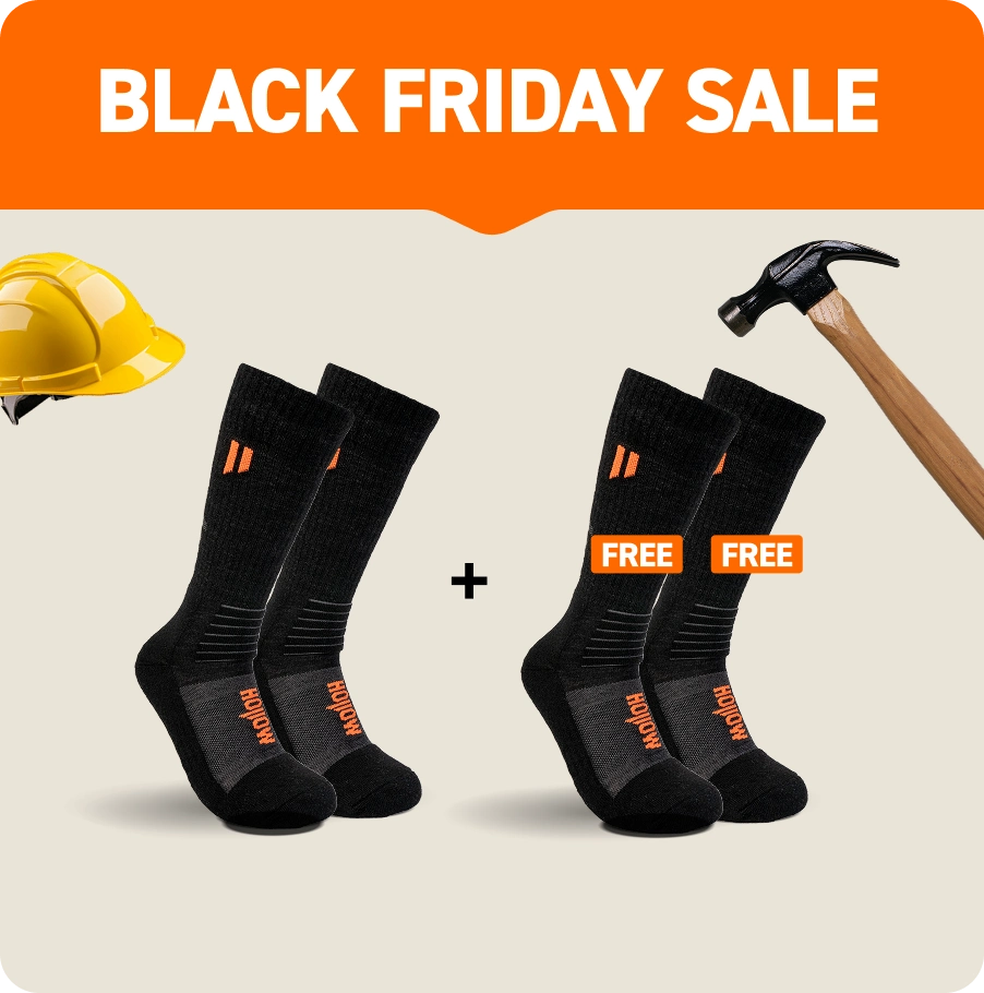 Most work socks fall apart after a few months. Hollow Trade Socks use premium alpaca fibers with superior tensile strength. Tested on job sites across the country, these become your go-to pair that actually survives real work.