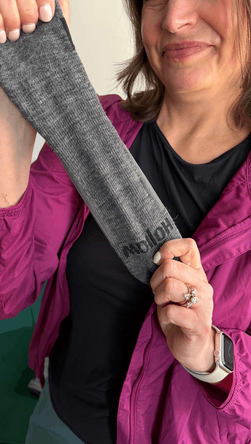 “Hollow uses alpaca instead of synthetic fiber, so your feet can breathe naturally—that’s huge for circulation and lymphatic health.”